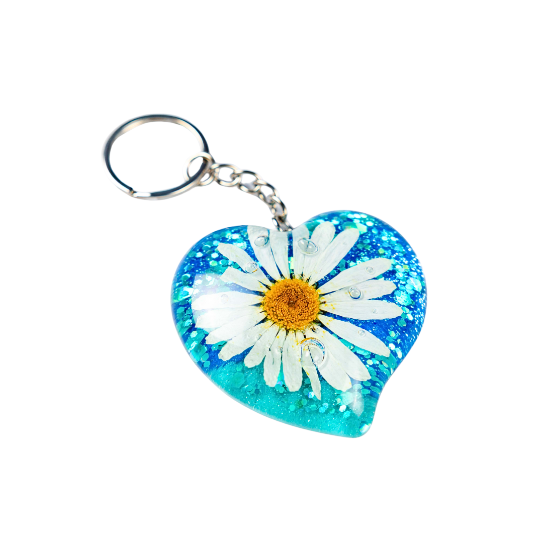 Unikatni obesek iz epoksi smole, s posušenim cvetjem – MARJETICA